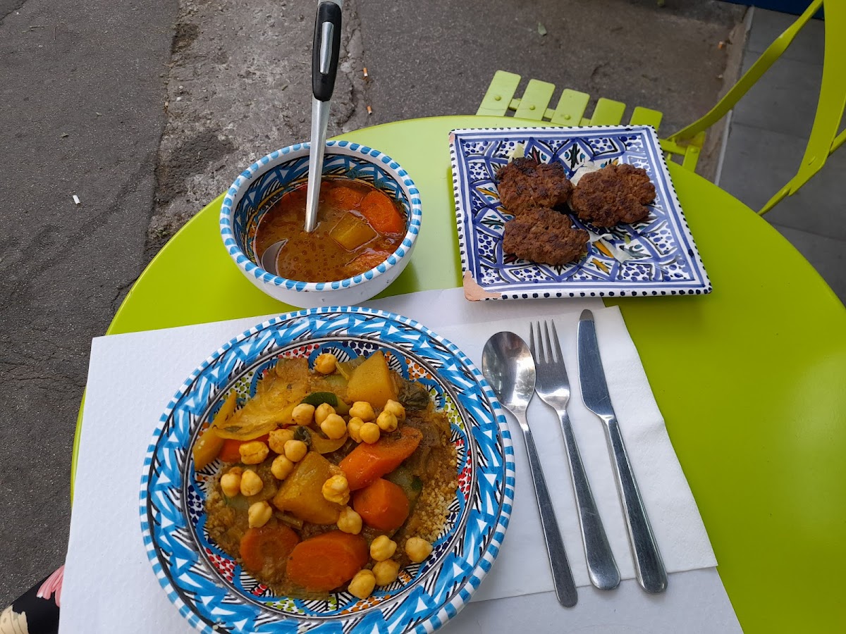 PLANETE COUSCOUS offers generous portions that attract people who appreciate a good price-to-quantity ratio without compromising on flavor. Chicken lovers often gravitate toward the couscous poulet, which includes a substantial chicken thigh served alongside a fragrant bowl of couscous, vegetables, and a savory broth. For vegetarians, the vegetable couscous stands out for its thoughtful seasoning and satisfying depth.